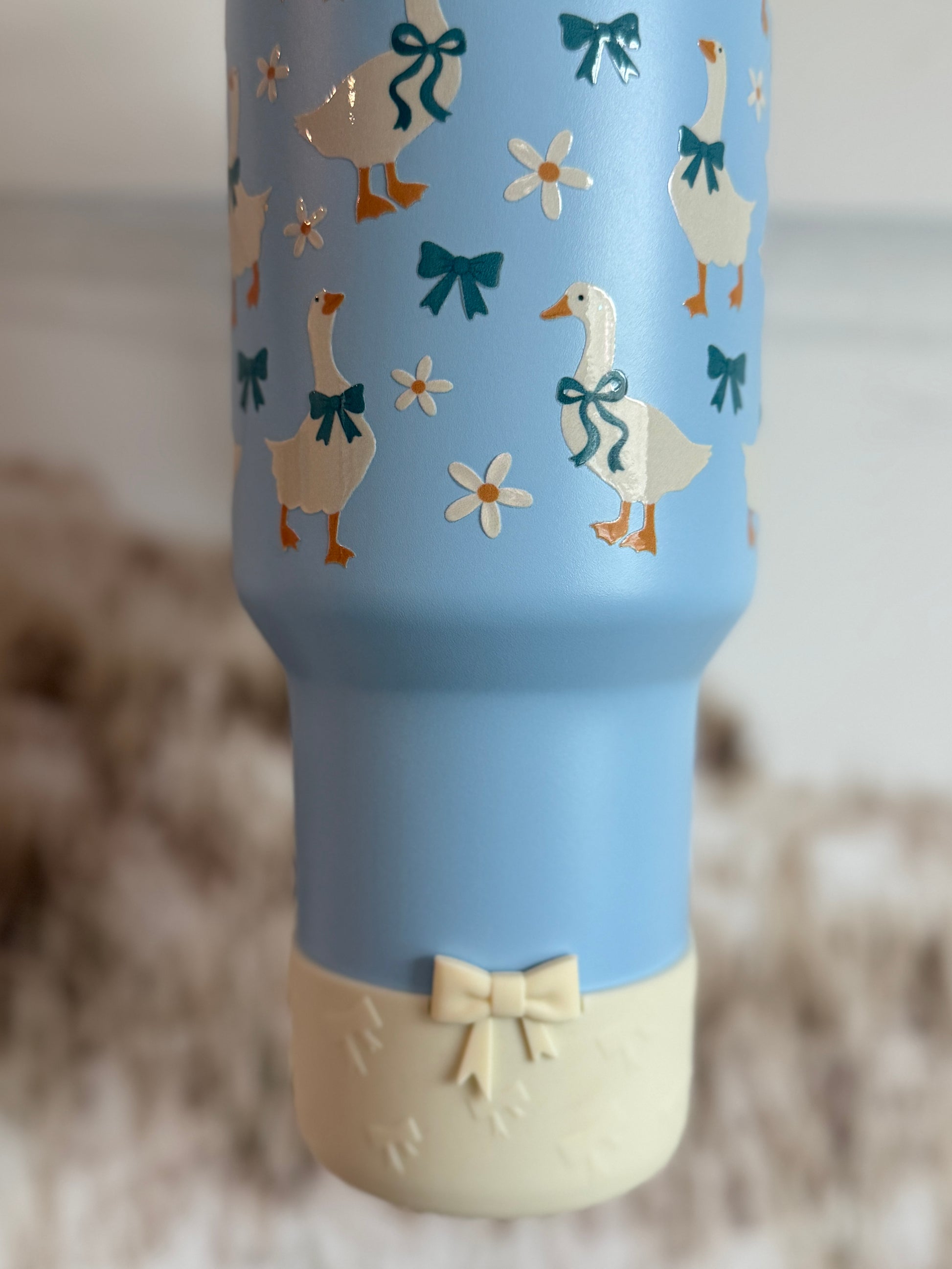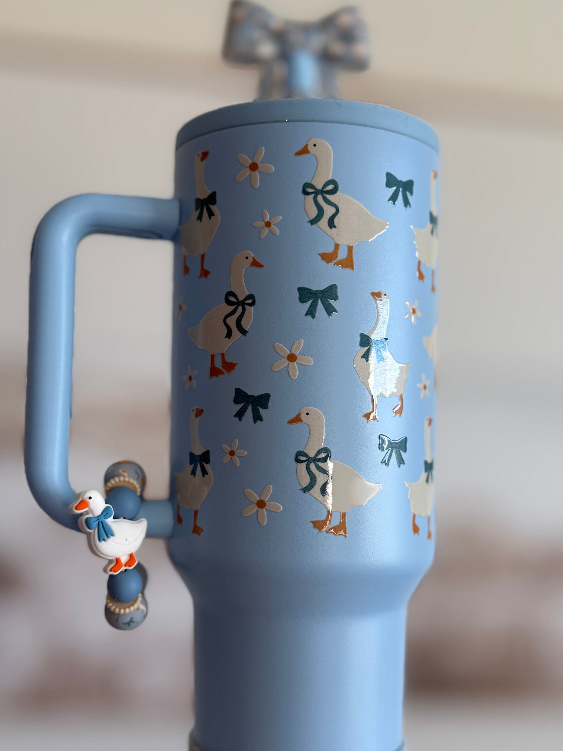 Preorder only for Blue 40oz flip top tumbler, goose wrap, alternate color straw topper and boot, and cup charm. (Decorated lid is additional and can be found under the add-ons tab).