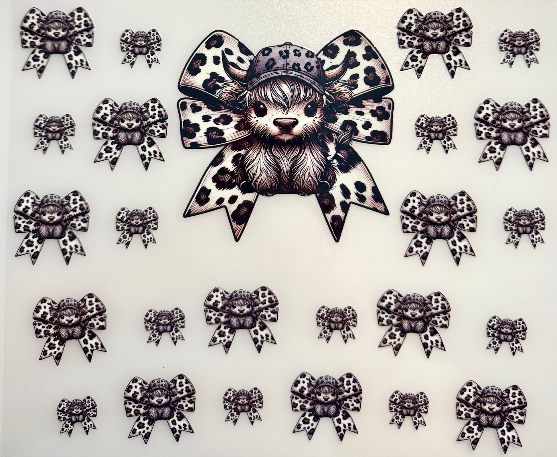 Cow with hat and leopard black and white bows