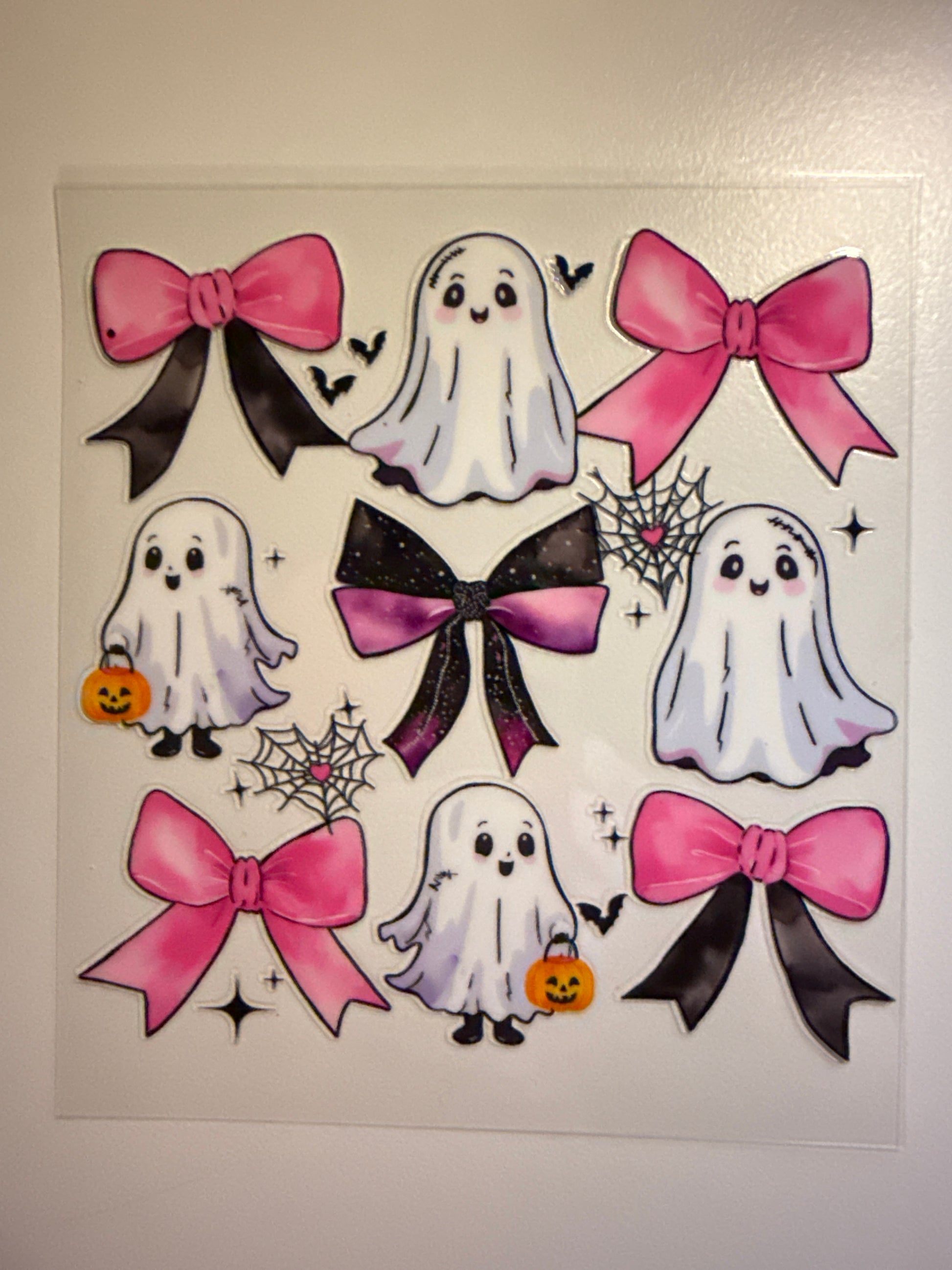pink and black ghosts with bows